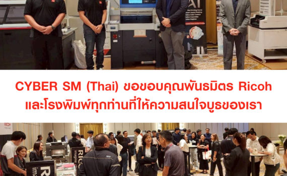 งานสัมมนาเทคโนโลยีการพิมพ์ดิจิทัล ณ จังหวัดเชียงให […] News blog CYBER SM (Thai) ขอขอบคุณพันธมิตร Ricoh และโรงพิมพ์ทุกท่านที่ให้ความสนใจบูธของเรา 🙏
