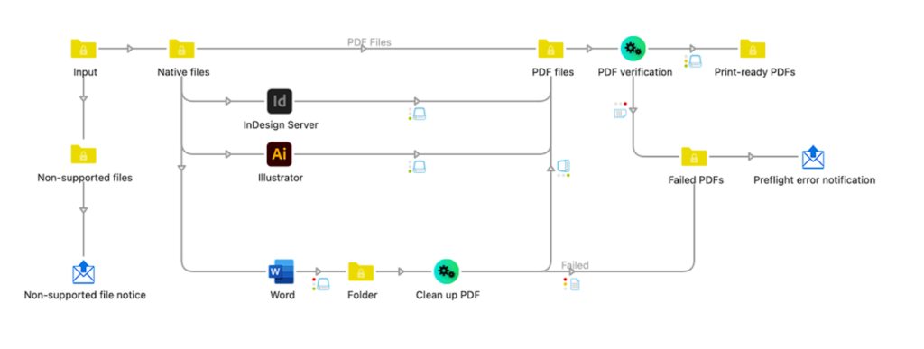 Enfocus Switch คือแพลตฟอร์ม Workflow Automation อัจฉริยะ ที่เข้ามาจัดการงาน Prepress, QC, และการจัดส่งไฟล์แทนคุณทั้งหมด